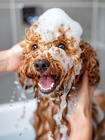 Basic bath and blow-dry for your dog, using a hypoallergenic dog shampoo. (*Note: Bathing area, such as a bathtub or sink, must be available in-home for this service.)